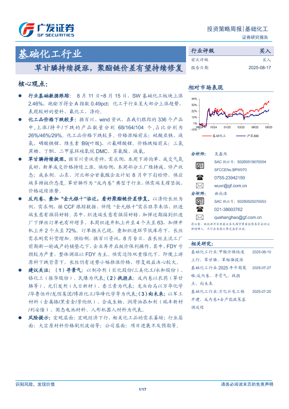 【广发证券】【20250817】草甘膦持续提涨,聚酯链价差有望持续修复-17页