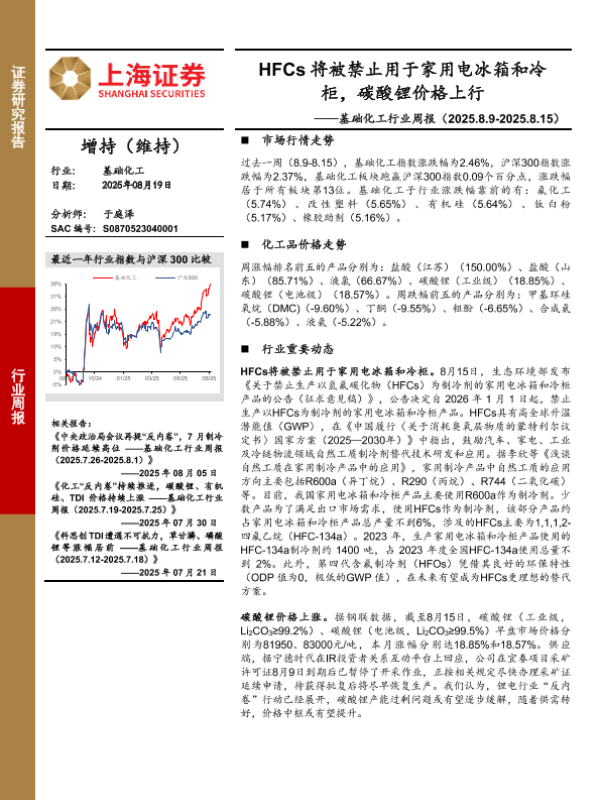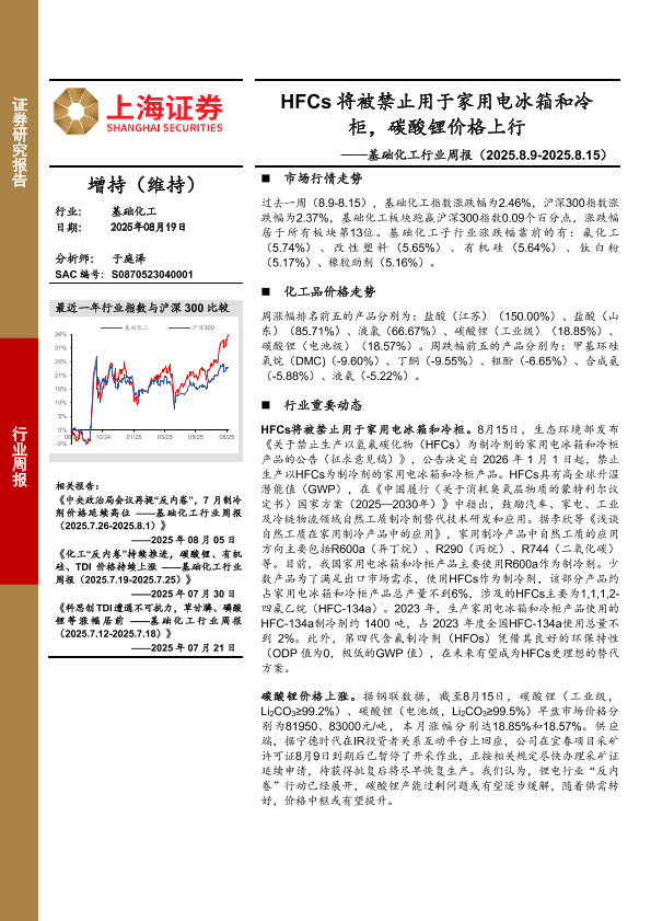 【上海证券】【20250819】HFCs将被禁止用于家用电冰箱和冷柜,碳酸锂价格上行-10页
