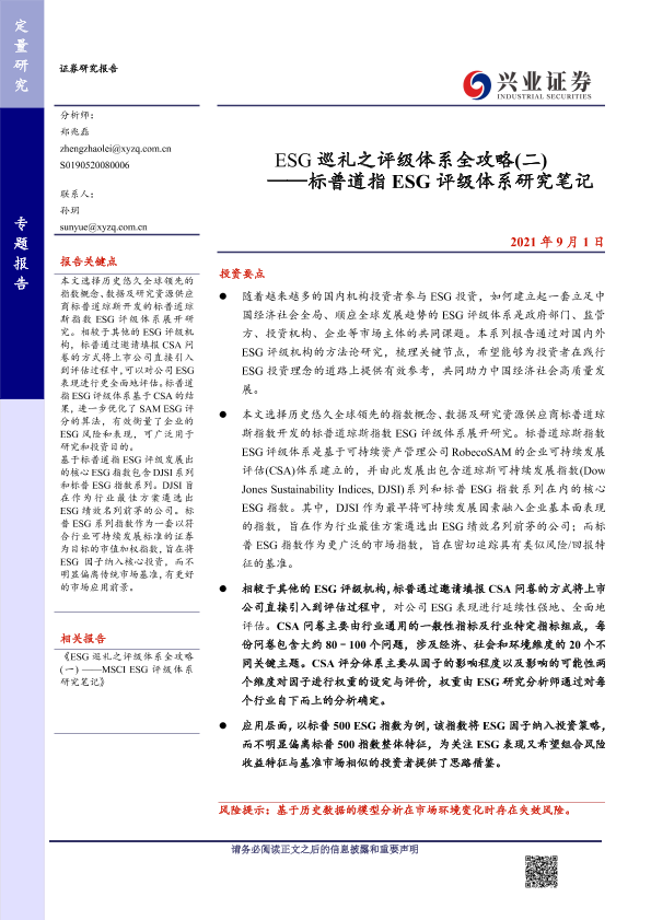 【兴业证券】【20210901】ESG巡礼之评级体系全攻略(二):标普道指ESG评级体系研究笔记-17页