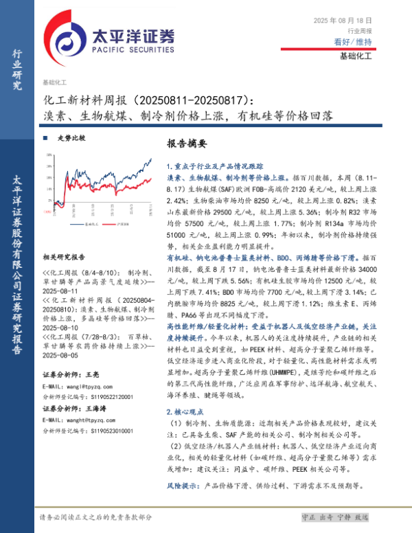 【太平洋证券】【20250818】化工新材料行业周报:溴素、生物航煤、制冷剂价格上涨,有机硅等价格回落-22页
