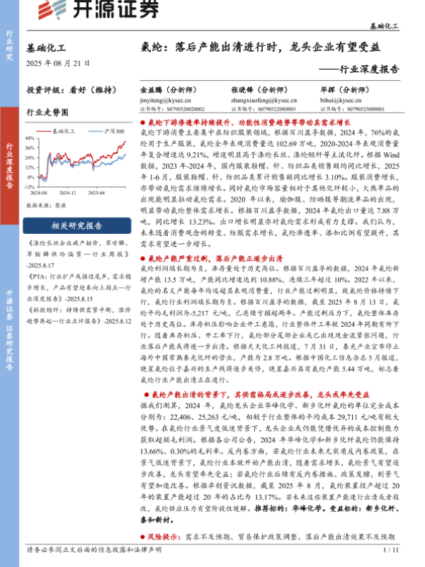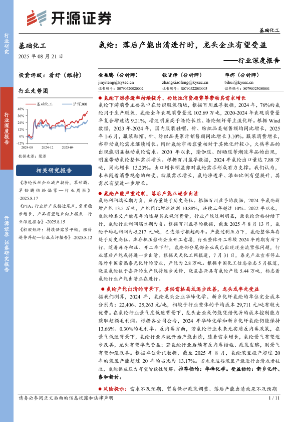 【开源证券】【20250821】氨纶:落后产能出清进行时,龙头企业有望受益-11页