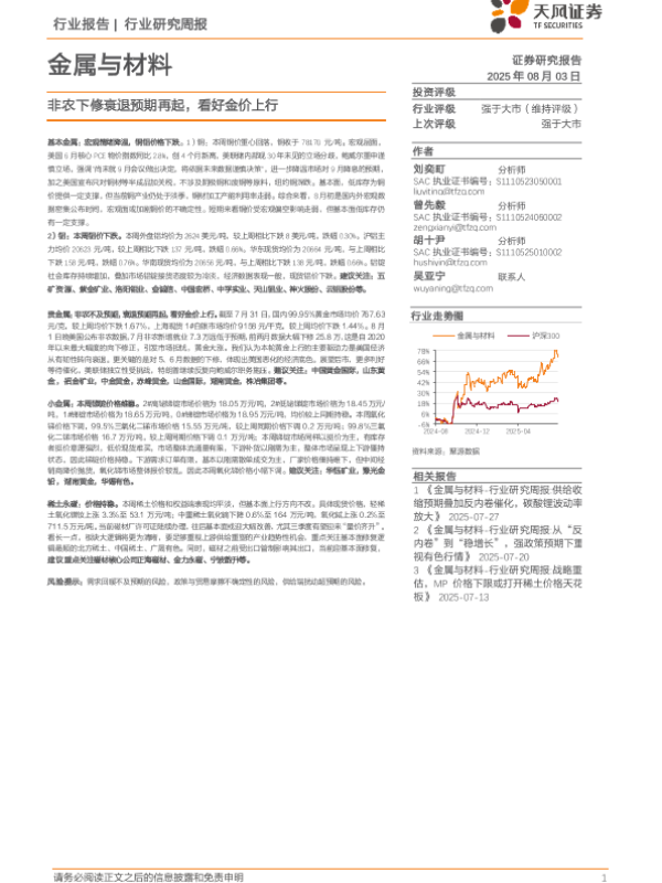 【天风证券】【20250803】非农下修衰退预期再起,看好金价上行-15页