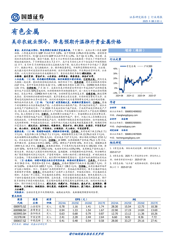 【国盛证券】【20250803】美非农就业预冷,降息预期升温推升贵金属价格-29页