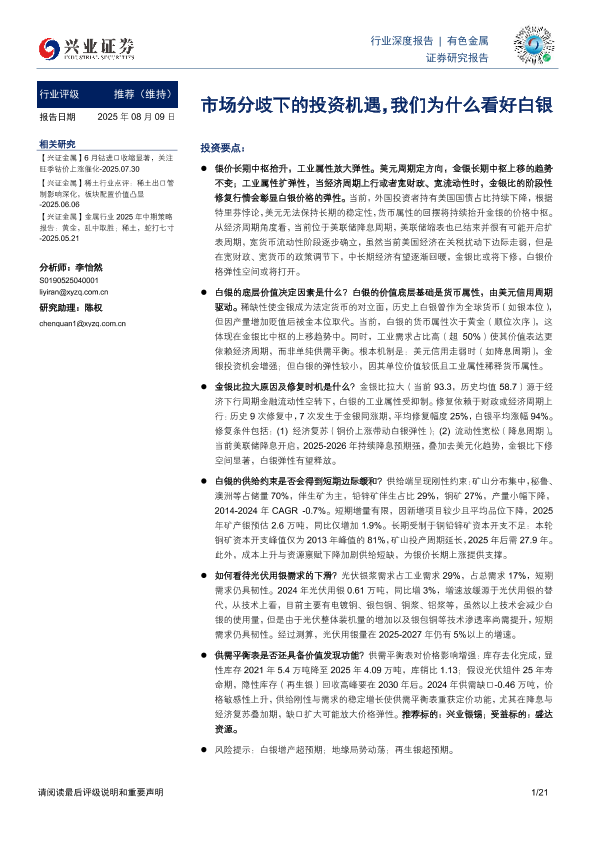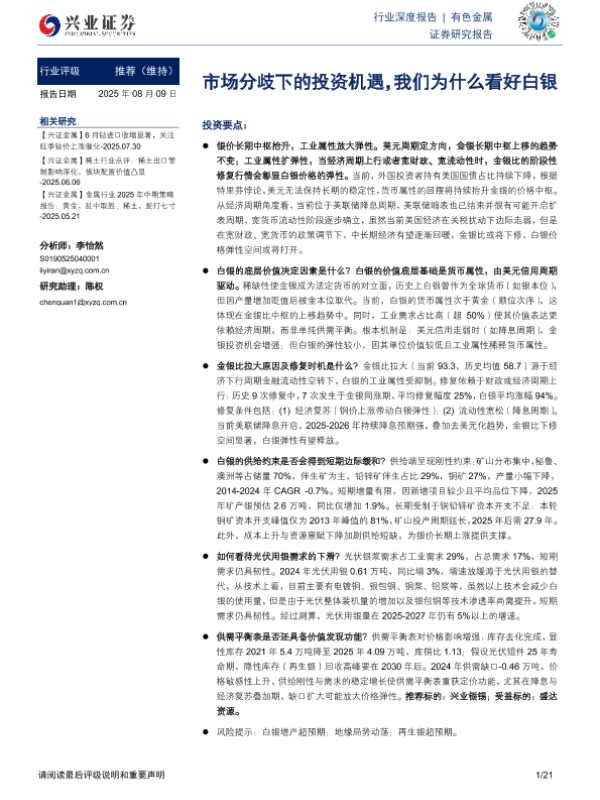 【兴业证券】【20250809】市场分歧下的投资机遇,我们为什么看好白银-21页