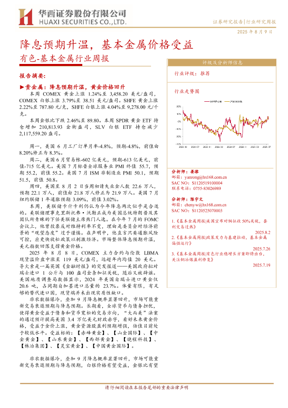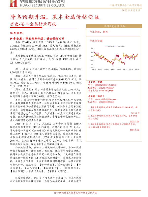 【华西证券】【20250809】降息预期升温,基本金属价格受益-基本金属行业周报-22页