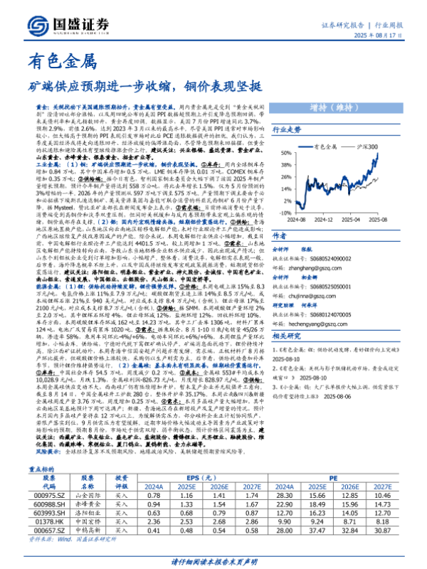 【国盛证券】【20250817】矿端供应预期进一步收缩,铜价表现坚挺-28页