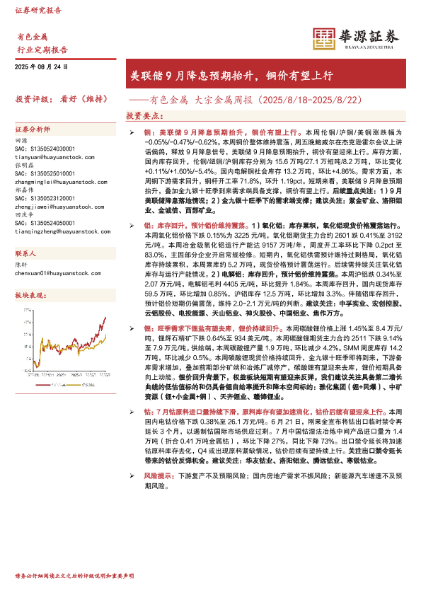 【华源证券】【20250824】有色金属大宗金属周报:美联储9月降息预期抬升,铜价有望上行-16页