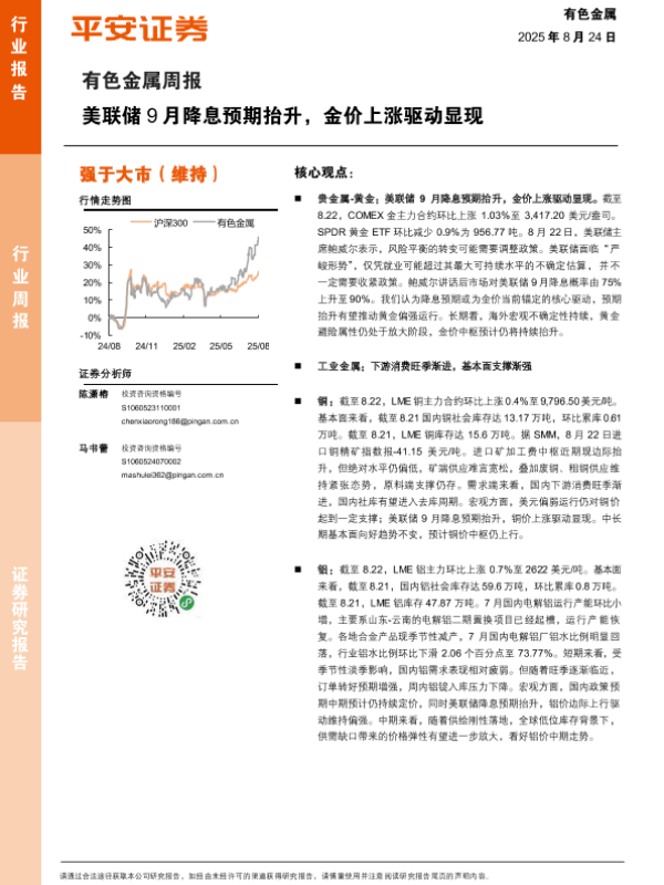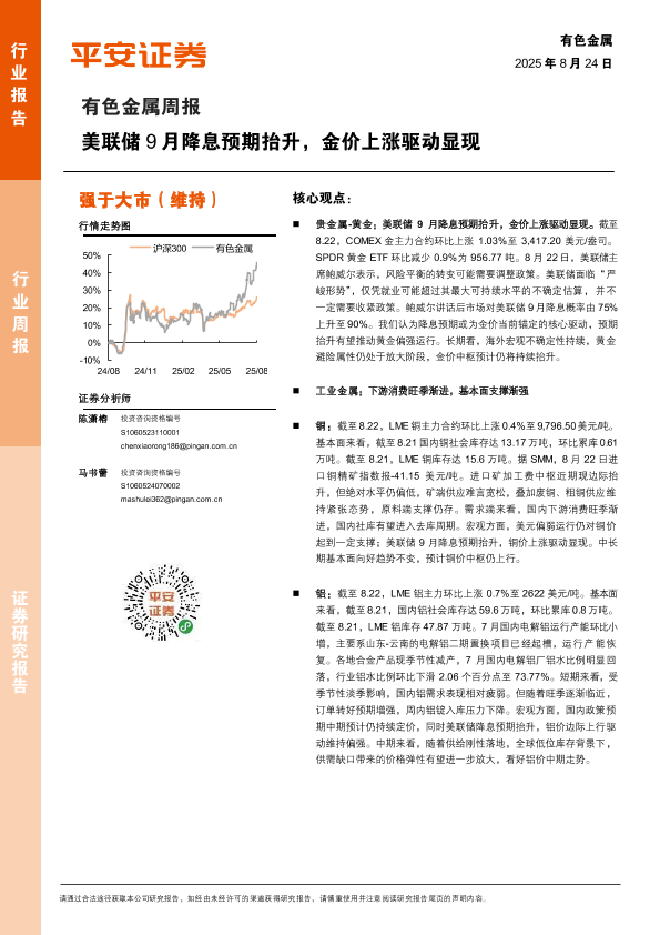 【平安证券】【20250824】有色金属行业周报:美联储9月降息预期抬升,金价上涨驱动显现-12页