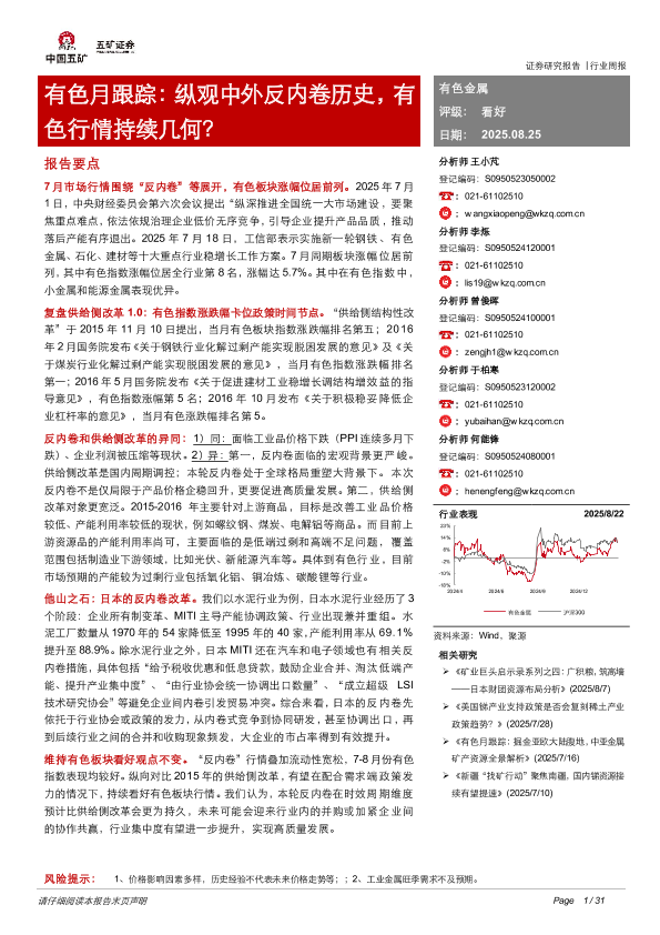 【五矿证券】【20250825】有色月跟踪:纵观中外反内卷历史,有色行情持续几何?-31页