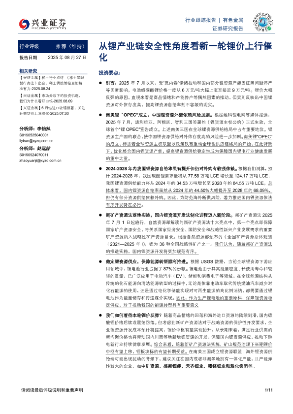 【兴业证券】【20250827】从锂产业链安全性角度看新一轮锂价上行催化-11页