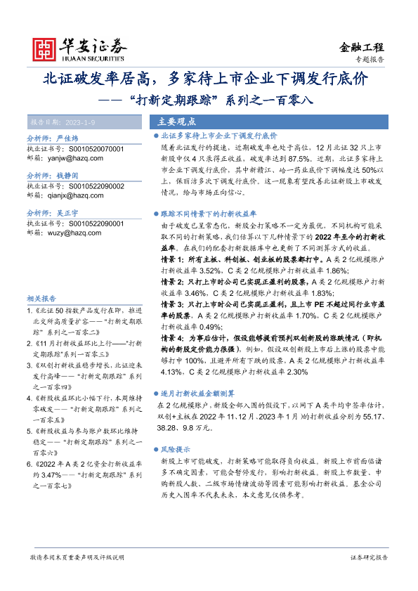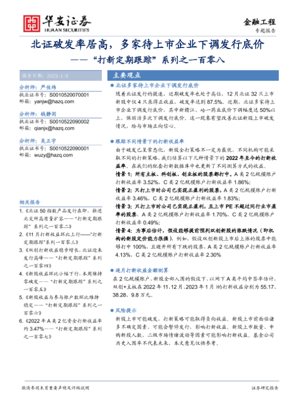 【华安证券】【20230109】“打新定期跟踪”系列之一百零八:北证破发率居高,多家待上市企业下调发行底价-21页