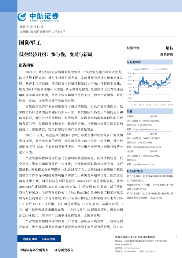 【中航证券】【20250811】国防军工-低空经济月报 快与慢,变局与新局-27页