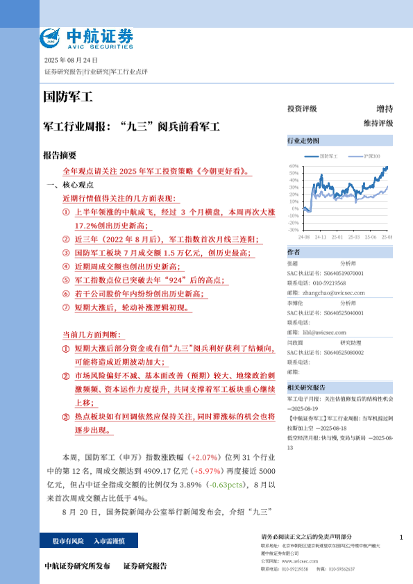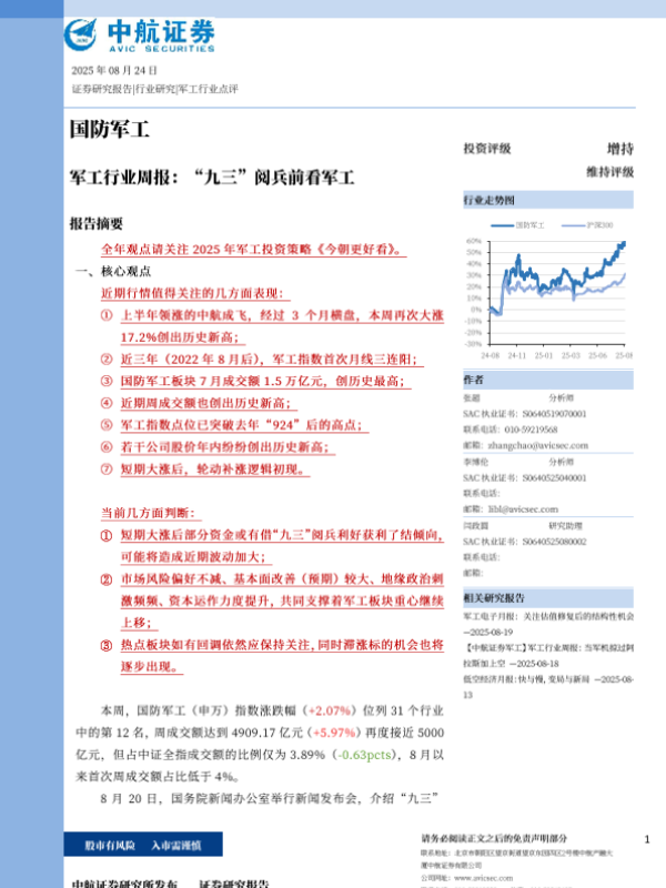 【中航证券研究所发布】【20250824】军工行业周报 "九三"阅兵前看军工-35页