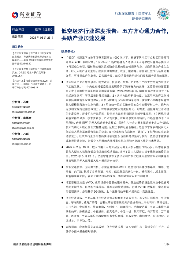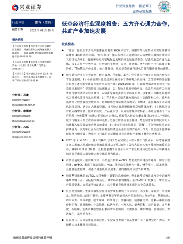 【兴业证券】【20250825】低空经济行业深度报告:五方齐心通力合作,共助产业加速发展-54页