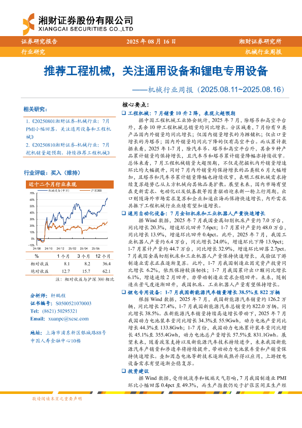 【湘财证券】【20250816】工程机械-推荐工程机械,关注通用设备和锂电专用设备-16页