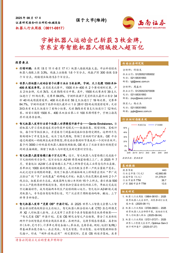【西南证券】【20250817】宇树机器人运动会已斩获3枚金牌-京东宣布智能机器人领域投入超百亿-13页