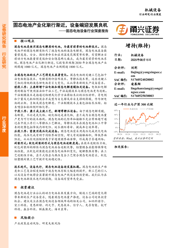 【甬兴证券】【20250815】固态电池产业化渐行渐近,设备端迎发展良机-28页