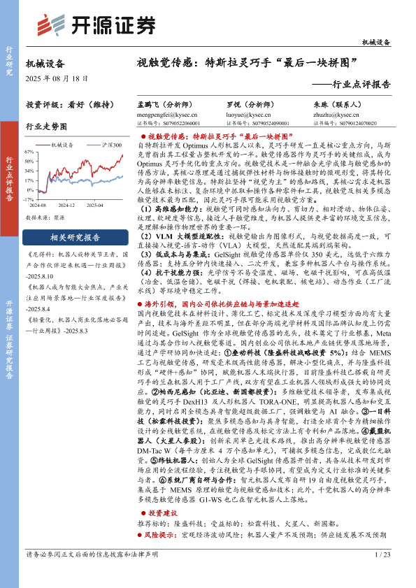 【开源证券】【20250818】特斯拉灵巧手“最后一块拼图”-视触觉传感:机械设备行业点评报告-23页