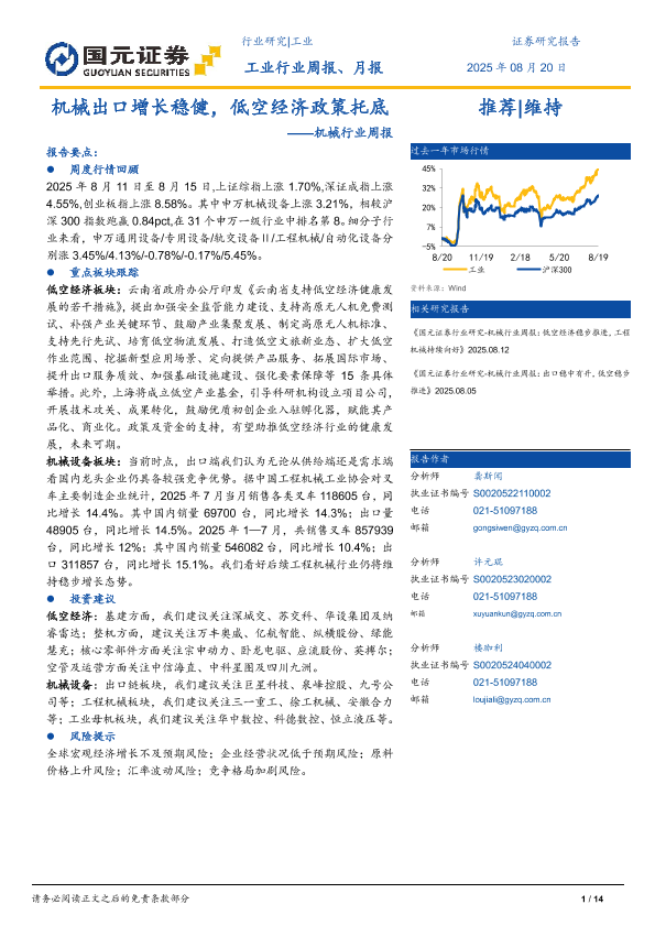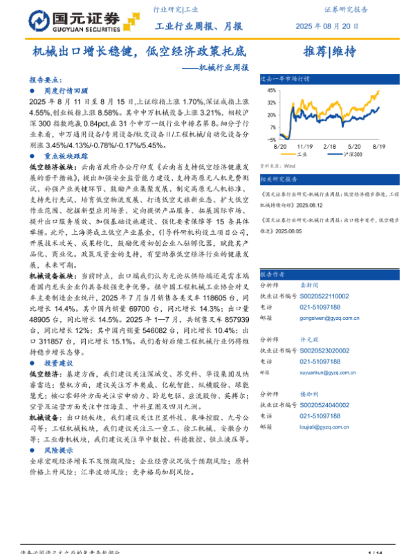 【国元证券】【20250820】机械行业周报:机械出口增长稳健,低空经济政策托底-14页
