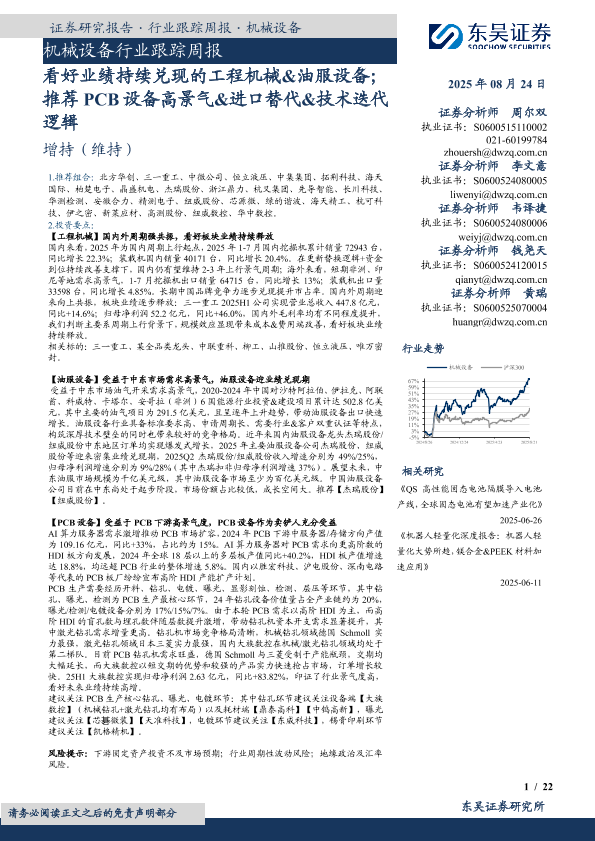 【东吴证券】【20250824】三一重工-看好业绩持续兑现的工程机械&油服设备-推荐PCB设备高景气&进口替代&技术迭代逻辑-22页