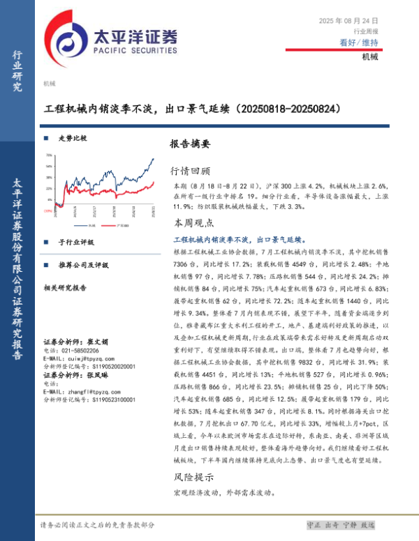 【太平洋证券】【20250824】工程机械内销淡季不淡,出口景气延续-14页
