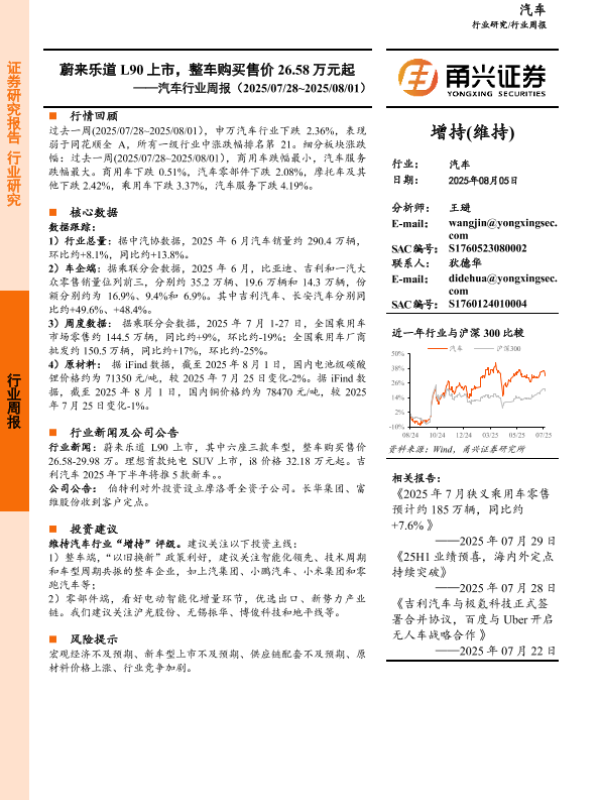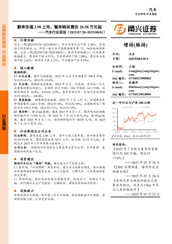 【甬兴证券】【20250805】蔚来-乐道L90上市,整车购买售价26.58万元起-12页