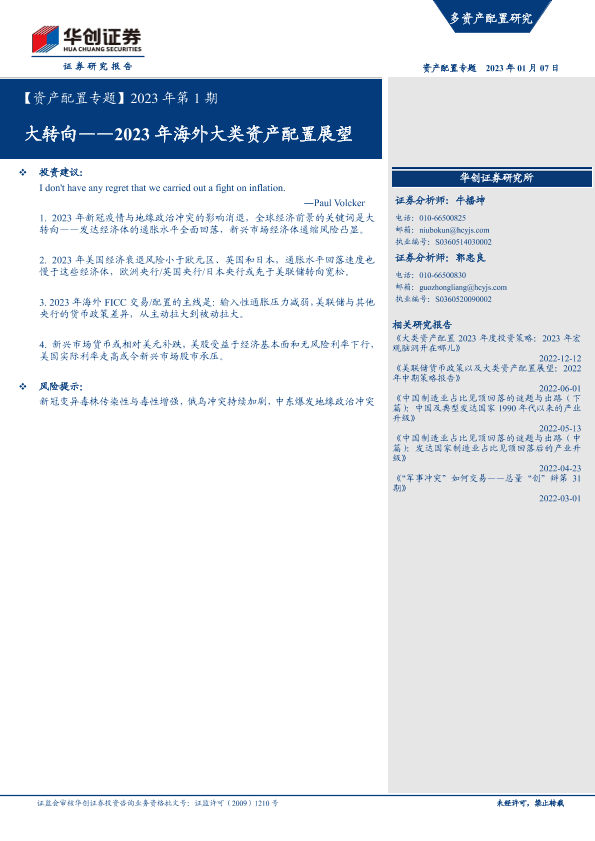 【华创证券】【20230107】2023年第1期:2023年海外大类资产配置展望,大转向-39页