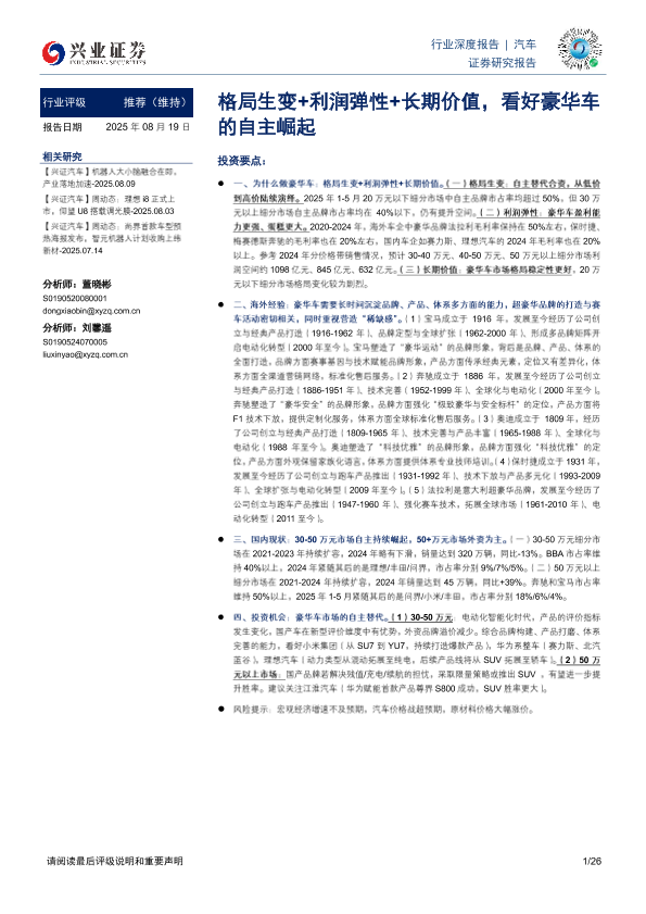 【兴业证券】【20250819】汽车行业深度报告:格局生变+利润弹性+长期价值,看好豪华车的自主崛起-26页