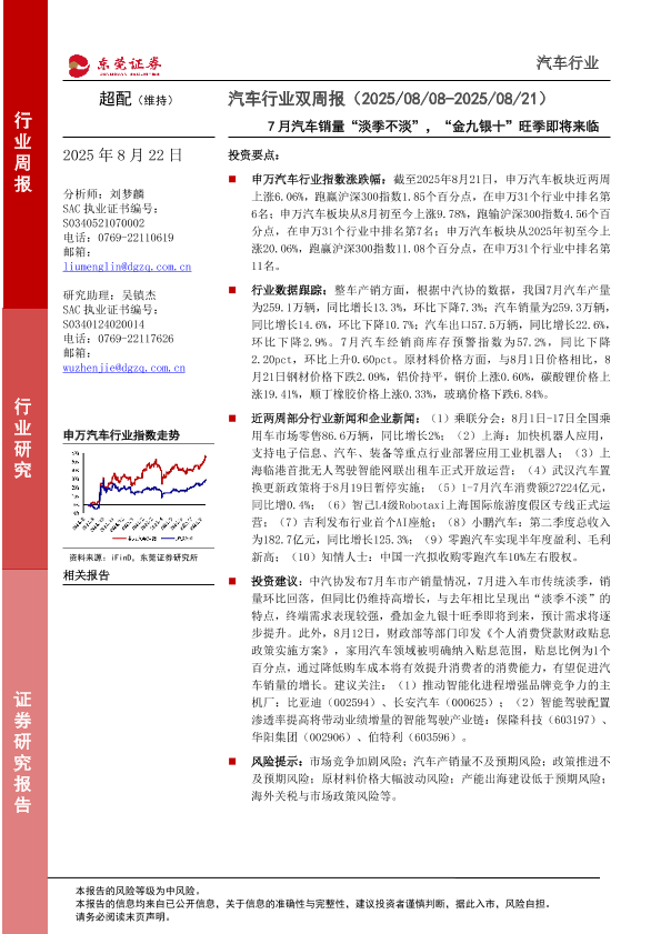 【东莞证券】【20250822】汽车-7月汽车销量“淡季不淡”,“金九银十”旺季即将来临-11页