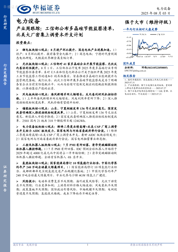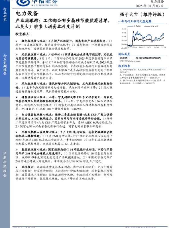 【华福证券】【20250803】电力设备产业周跟踪:工信部公布多晶硅节能监察清单-北美大厂密集上调资本开支计划-18页
