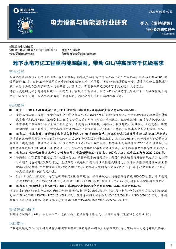 【国金证券】【20250802】雅下水电万亿工程重构能源版图-带动GIL 特高压等千亿级需求-15页