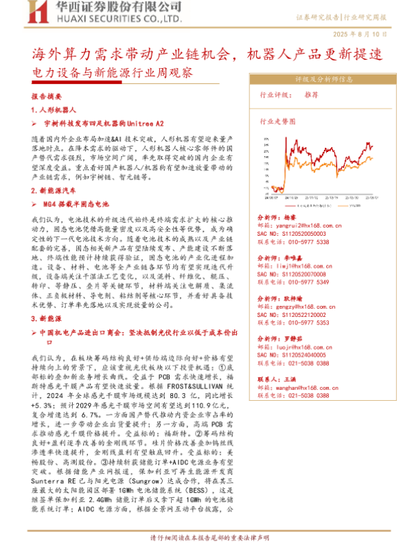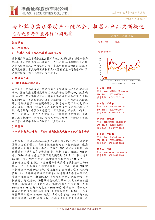 【华西证券】【20250810】电力设备与新能源行业周观察:海外算力需求带动产业链机会-机器人产品更新提速-24页