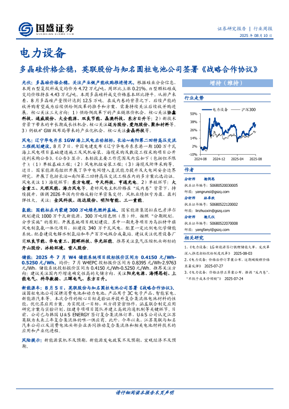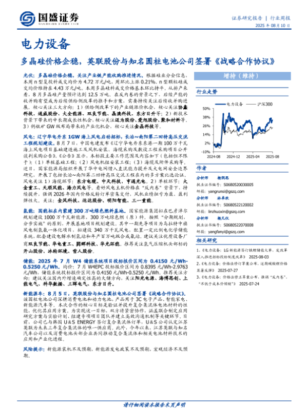 【国盛证券】【20250810】多晶硅价格企稳,英联股份与知名圆柱电池公司签署《战略合作协议》-13页