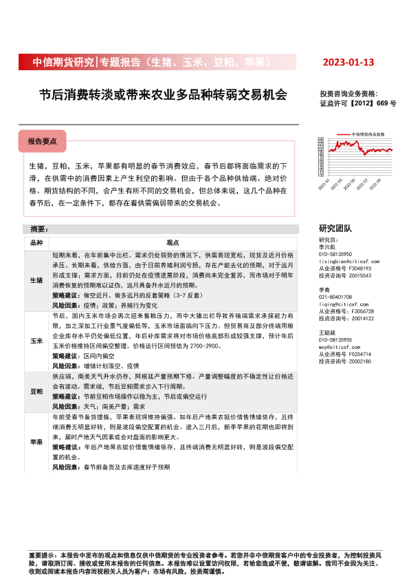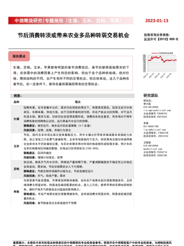 【中信期货】【20230113】专题报告(生猪、玉米、豆粕、苹果) :节后消费转淡或带来农业多品种转弱交易机会-17页
