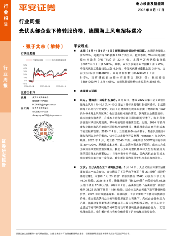 【平安证券】【20250817】光伏头部企业下修转股价格-德国海上风电招标遇冷-21页