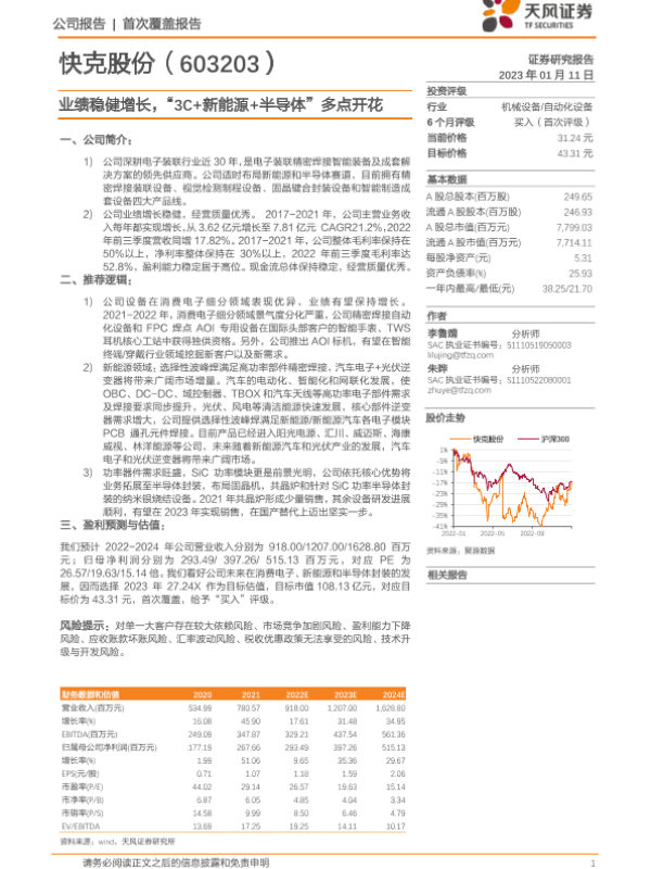 【天风证券】【20230111】业绩稳健增长,“3C+新能源+半导体”多点开花-29页