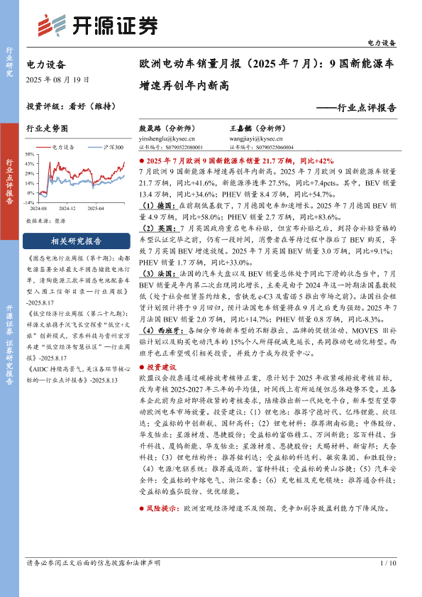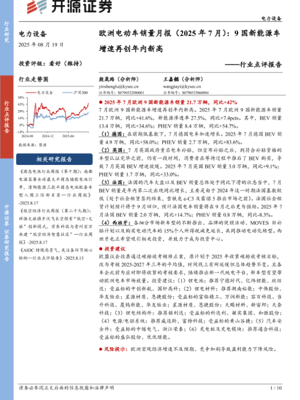 【开源证券】【20250819】欧洲电动车销量月报(2025年7月)-9国新能源车增速再创年内新高-10页
