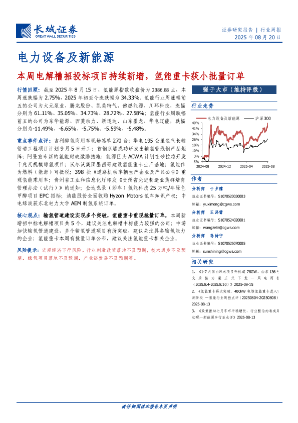 【长城证券】【20250820】电力设备及新能源行业周报:本周电解槽招投标项目持续新增,氢能重卡获小批量订单-11页
