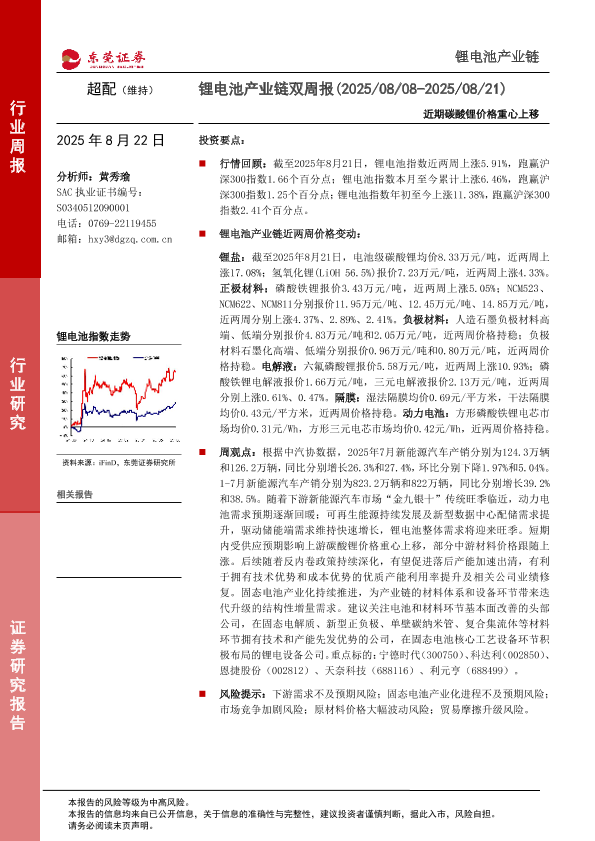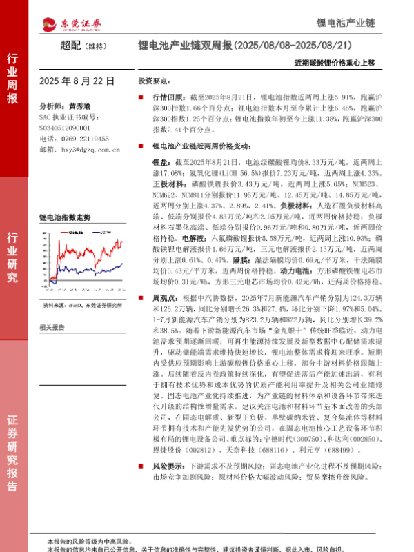 【东证证券】【20250822】锂电池产业链双周报:近期碳酸锂价格重心上移-13页