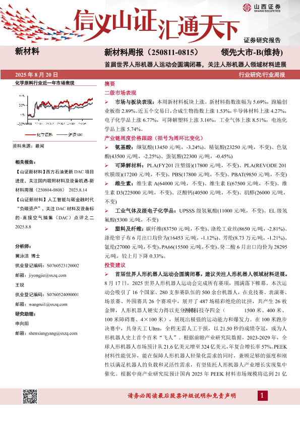 【山西证券】【20250820】首届世界人形机器人运动会圆满闭幕,关注人形机器人领域材料进展-24页