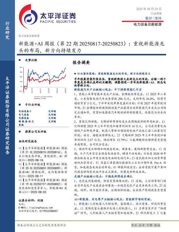 【太平洋证券】【20250824】新能源+AI周报(第22期):重视新能源龙头的布局,新方向持续发力-19页