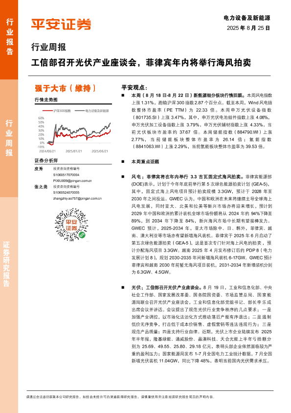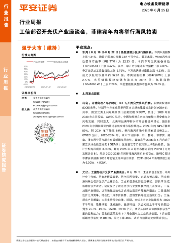 【平安证券】【20250825】电力设备及新能源行业周报:工信部召开光伏产业座谈会-菲律宾年内将举行海风拍卖-21页