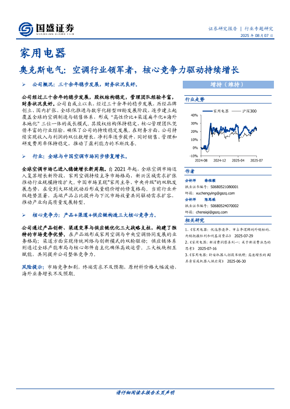 【国盛证券】【20250807】奥克斯电气-空调行业领军者,核心竞争力驱动持续增长-18页