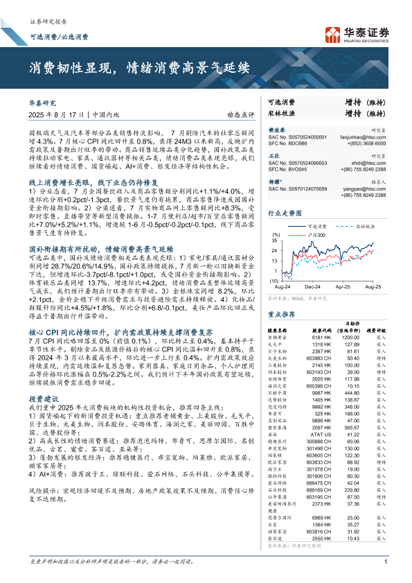 【华泰证券】【20250817】可选消费 必选消费动态点评:消费韧性显现,情绪消费高景气延续-13页