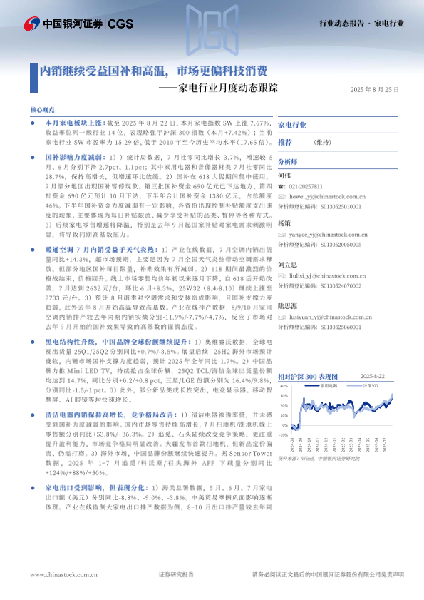 【中国银河证券(CGS)】【20250825】家电行业月度动态跟踪-内销继续受益国补和高温,市场更偏科技消费-53页