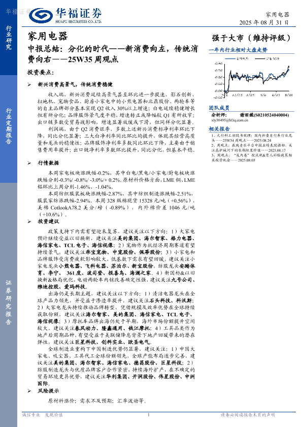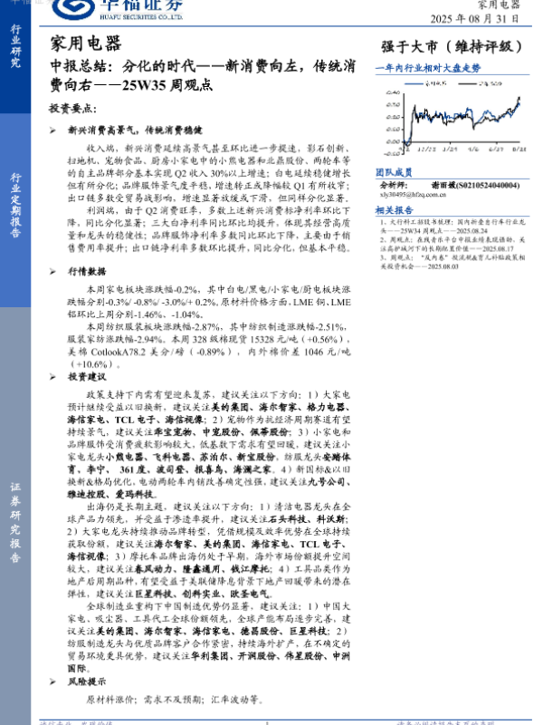 【华福证券】【20250831】家用电器-中报总结:分化的时代——新消费向左,传统消费向右-24页