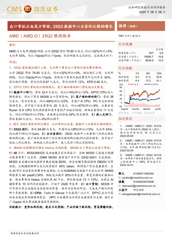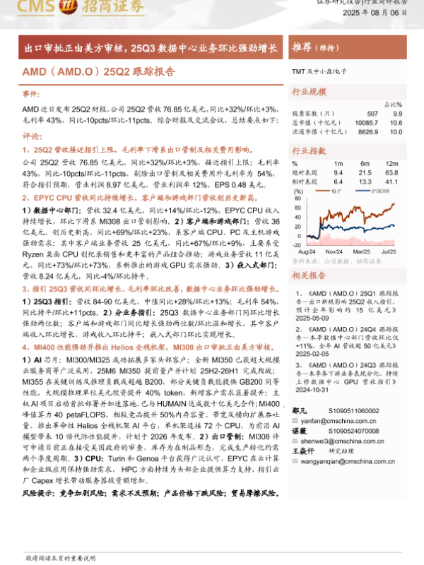 【海通证券】【20250806】AMD-出口审批正由美方审核,25Q3数据中心业务环比强劲增长-13页