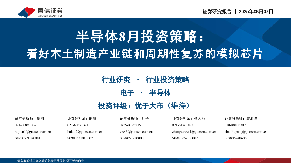 【国信证券】【20250807】半导体8月投资策略:看好本土制造产业链和周期性复苏的模拟芯片-20页