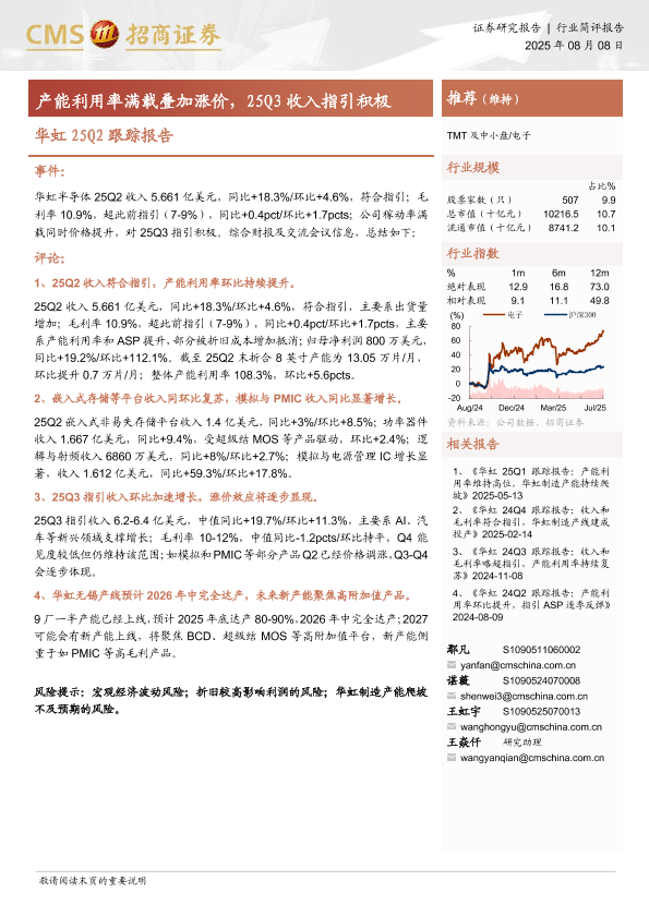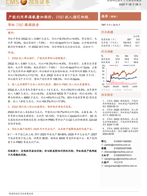 【华虹半导体】【20250808】华虹半导体-产能利用率满载叠加涨价,25Q3收入指引积极-12页
