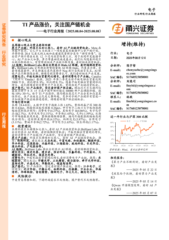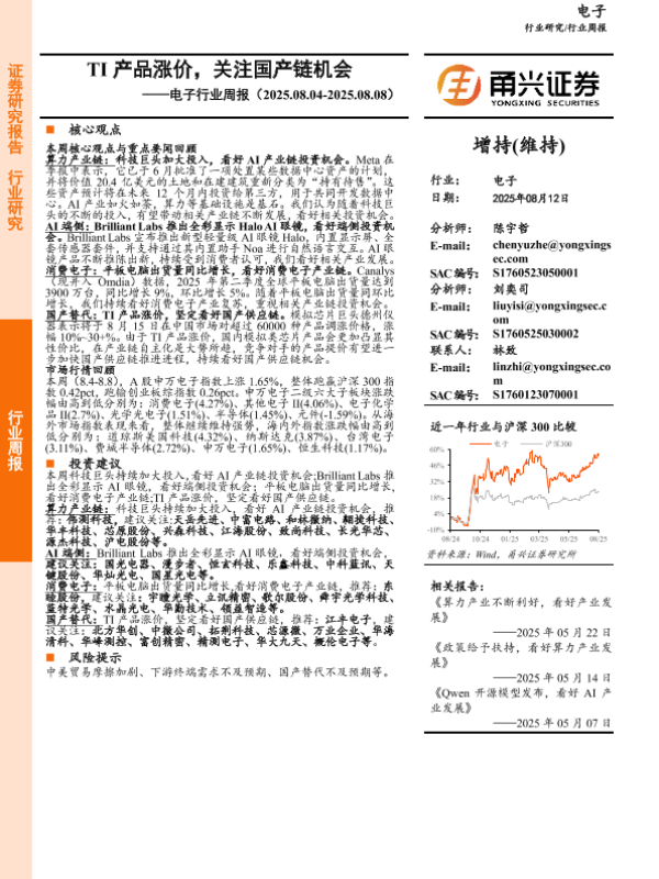【甬兴证券】【20250812】TI产品涨价,关注国产链机会-13页
